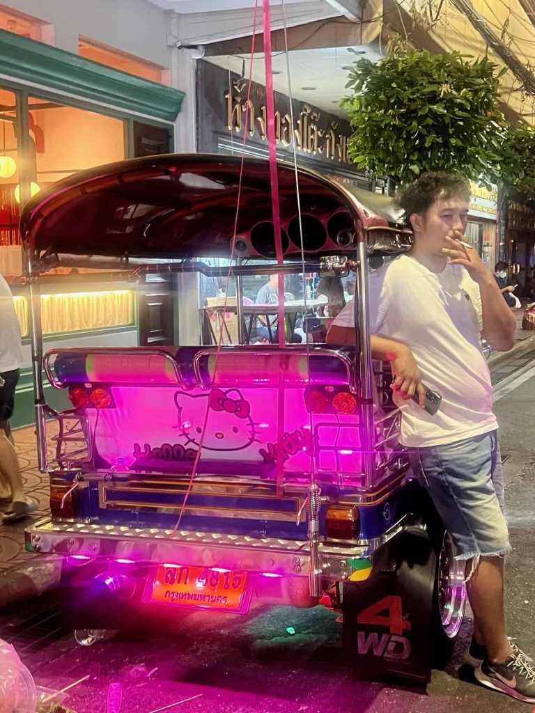 Grab (which is like Uber) is pretty easy to take around town, and you’ll want to download the app to use all over Southeast Asia. But we had better luck just hiring a tuk-tuk at 7 PM on a Friday – you can flag them down on the street and negotiate a price or ask your hotel to call one for you.