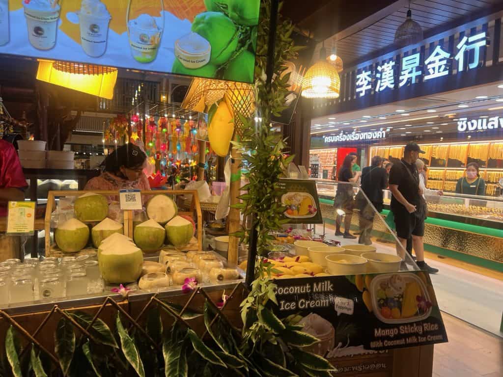 We took the water taxi down to grab lunch at ICONSIAM Mall. We’re not big shoppers but this place is extraordinary and has a huge indoor food market on the bottom floor. We grabbed some delicious cheap eats and then went up to the main floor to have a drink and people watch.