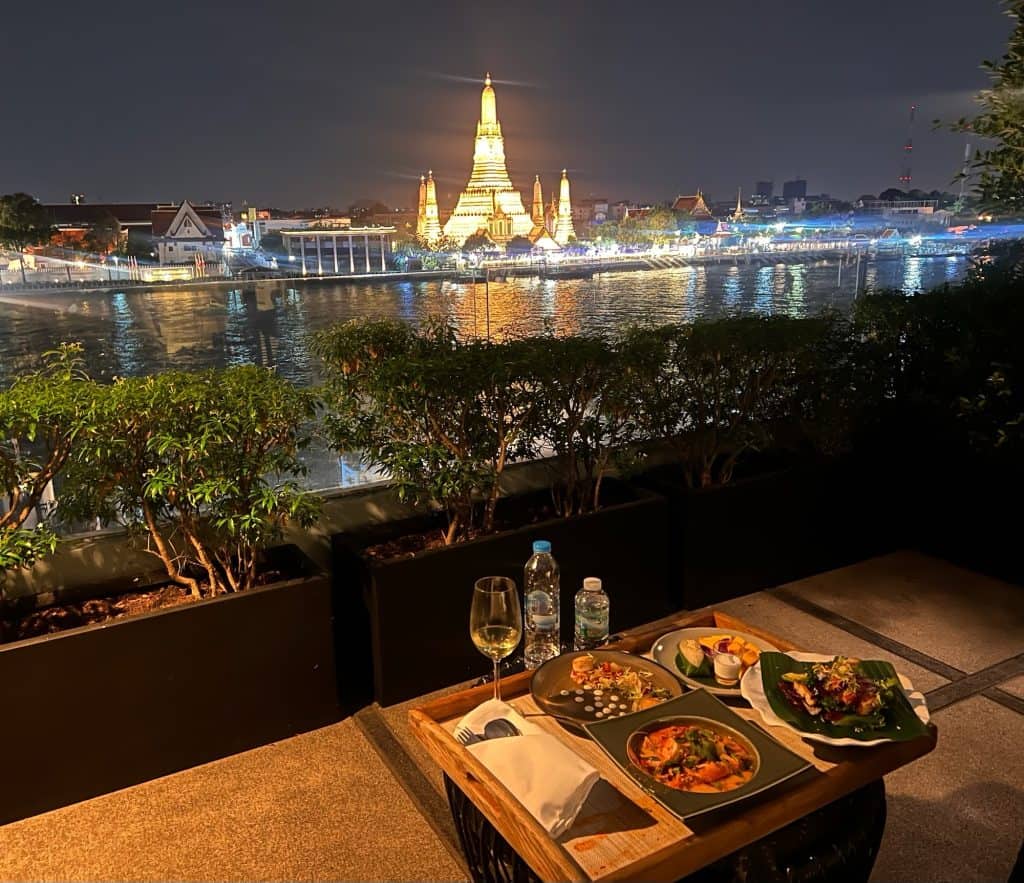 On our last morning in Bangkok, we enjoyed a lovely room-service breakfast on our balcony — with Wat Arun and the bustling activity on the Chao Phraya River as our backdrop — before bidding farewell to this incredible city and catching an afternoon flight to Luang Prabang on AirAsia.