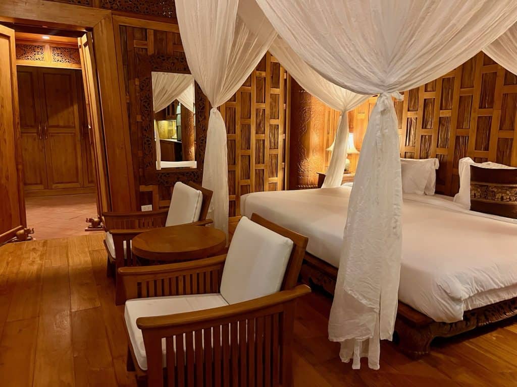 Arrive in Bangkok and kick off your adventure with a stay at the luxurious Hotel Riva Arun. One of the things we love about this part of the world is the affordability. In my backpacking days, I was splitting the cost of $25-$50 accommodations with travel partners (and knew many travelers who spent just $5-$10 on hostel beds). But we’re looking for a bit more comfort and style these days. Still our average nightly hotel price on this entire trip was just $208 (including our free night in Istanbul), which is shocking when you see our gorgeous accommodations and consider the flawless hospitality.