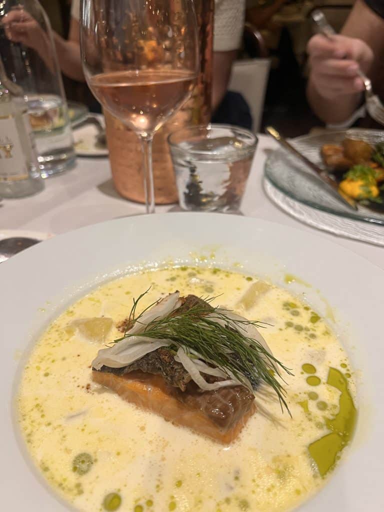 You absolutely must try the Lohikeitto, which is a creamy salmon soup made with potatoes, leeks, and fresh dill. This dish was a highlight of our entire trip to Northern Europe.