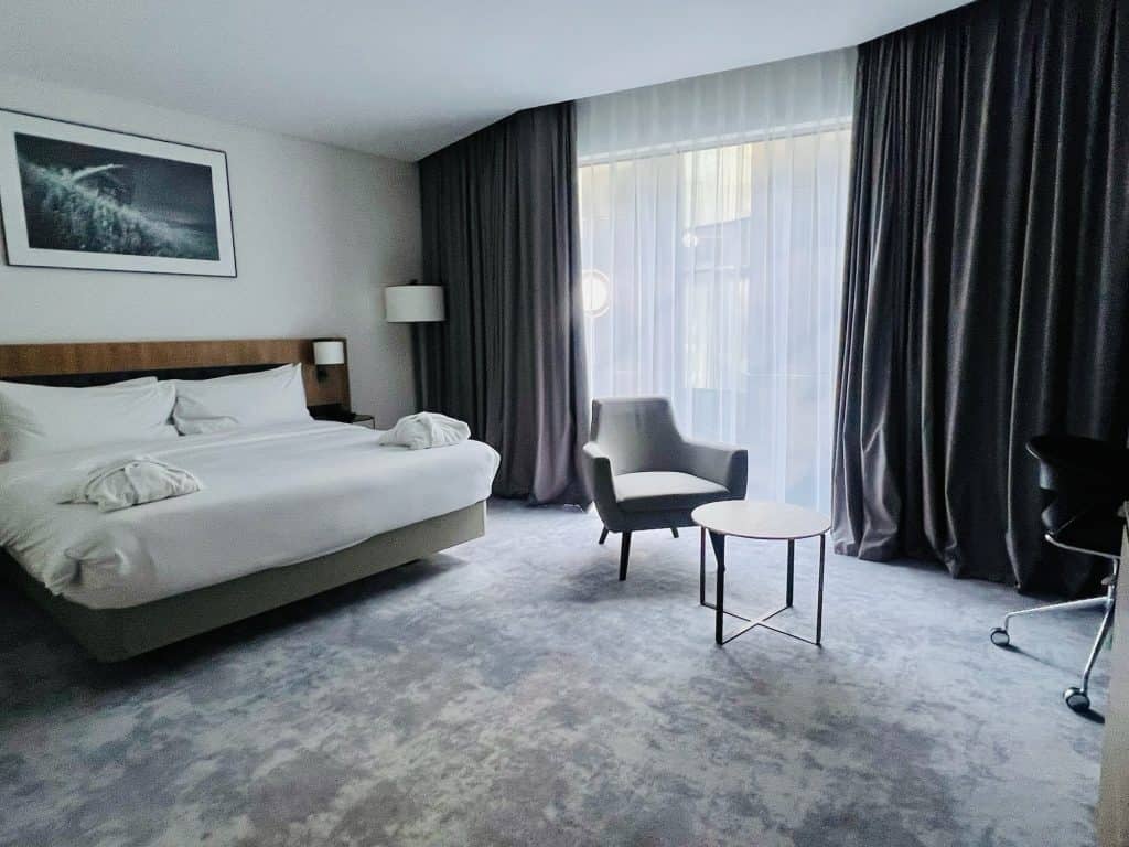Speaking of affordability, our hotel was also super posh for a $100/night Hilton Garden Inn — brand new, spacious, cozy, and complete with dressing gowns, slippers, and chocolates.