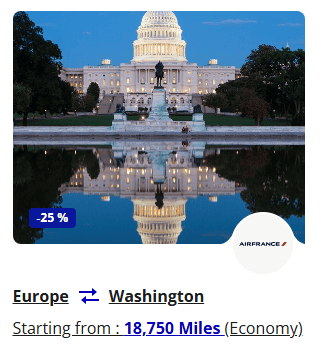 Flying Blue lists monthly specials, usually including long haul and short haul flights. For example, in March, they’re offering plenty of one-ways from major U.S. cities to Paris for 18,750 points for the next few months: