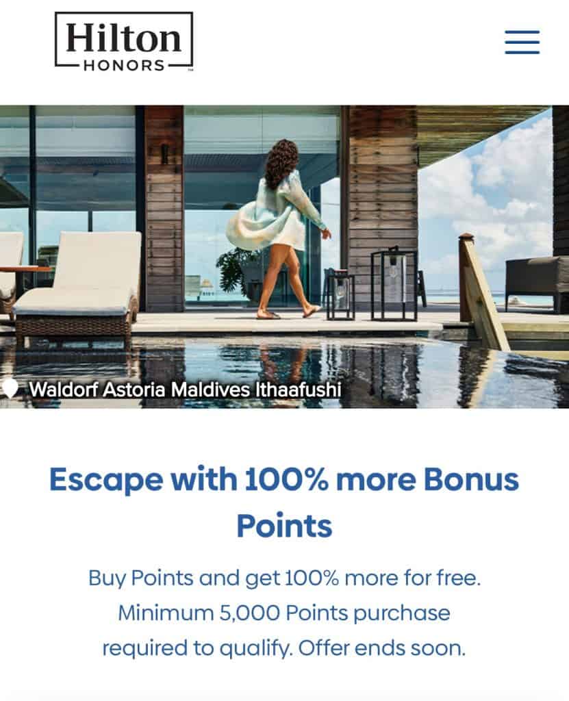 ⏰ You’re in luck because Hilton is running this bonus point sale right now. All you have to do is sign up for Hilton Honors rewards and buy points through this link.