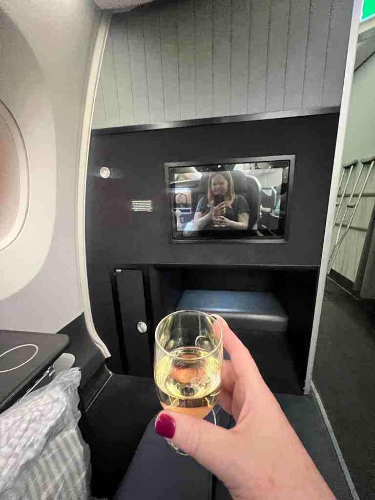 The seats looked modern, with a clean design and comfortable finishes. Having a private space felt like a real upgrade from premium economy, especially with extra room in the bulkhead row.