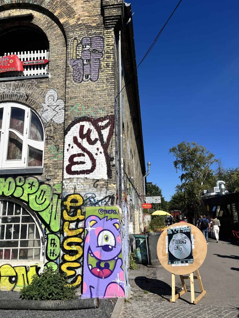 From there, we walked toward the Church of Our Saviour, which is known for its corkscrew spire. You can climb the tower and burn off those pastries. Then it’s a short walk from the church to Freetown Christiania.