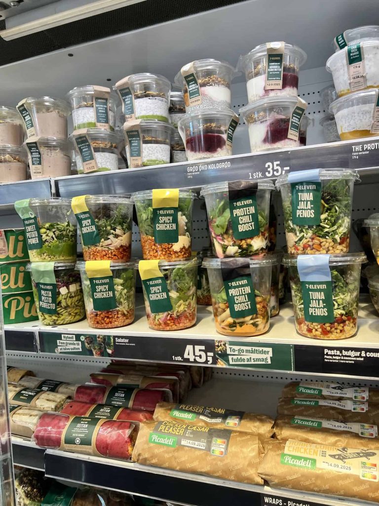 For example, a bottle of wine at Føtex City cost the same as a glass at the Tivoli Food Hall, and 7-Eleven had fresh, healthy breakfast and lunch options for just $5-$10. 7-Eleven convenience stores were prominent throughout the city and much nicer than what we may be used to in the US.