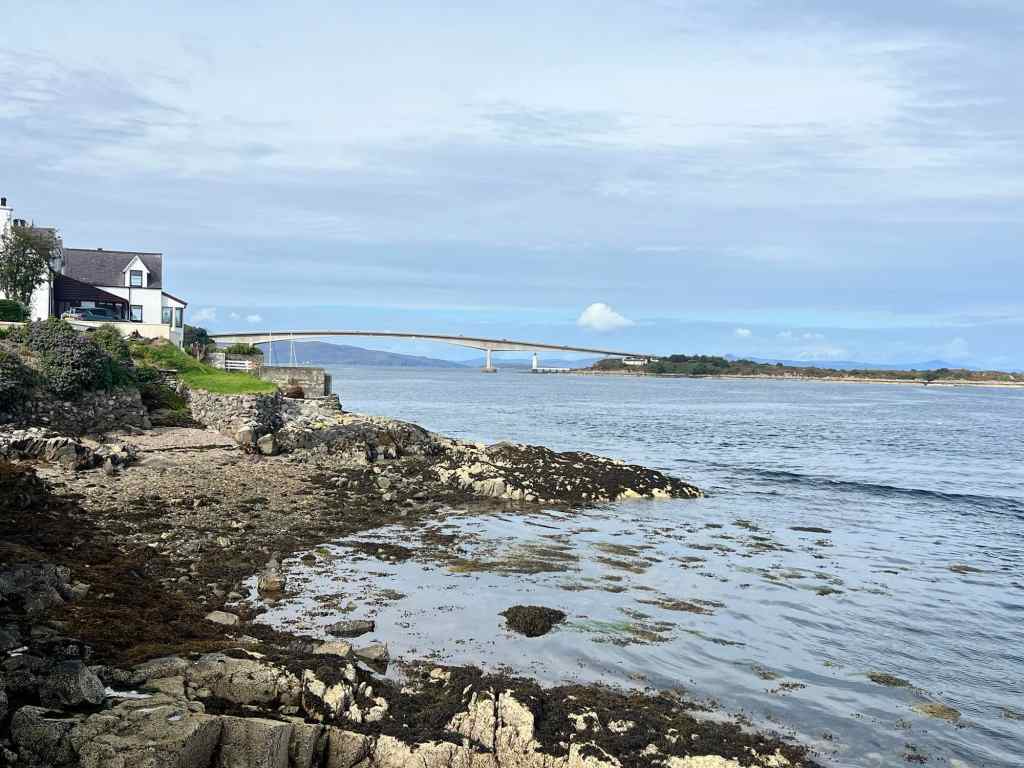 The Skye Bridge connects the mainland village, Kyle of Lochalsh, to the Isle of Skye.