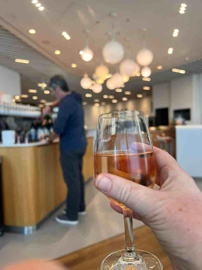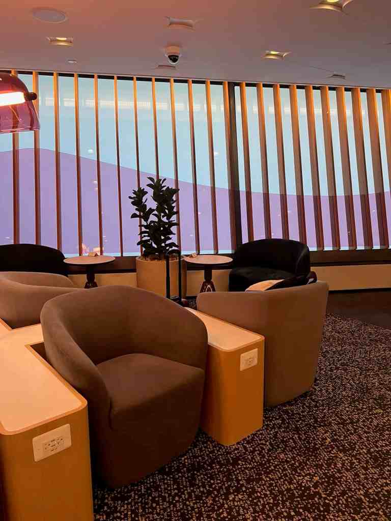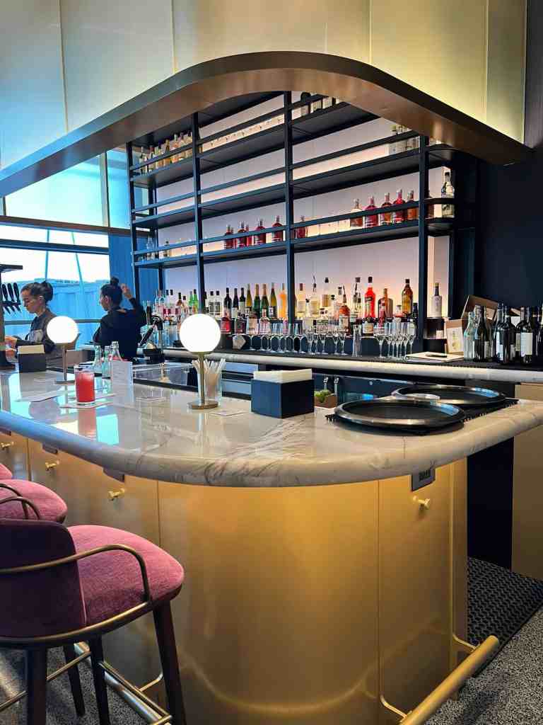 Location: Terminal A, near gates A22–A32. This lounge is definitely worth a visit for the complimentary Taittinger champagne alone. It’s also a nice open space with a decent design (downstairs opens during peak hours).