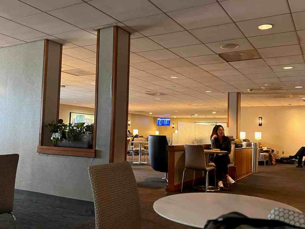 What to Expect: Basic snacks and drinks, and heavy crowds during peak hours. In our opinion, it’s still way better than hanging out in the terminal. C and D can be total chaos.