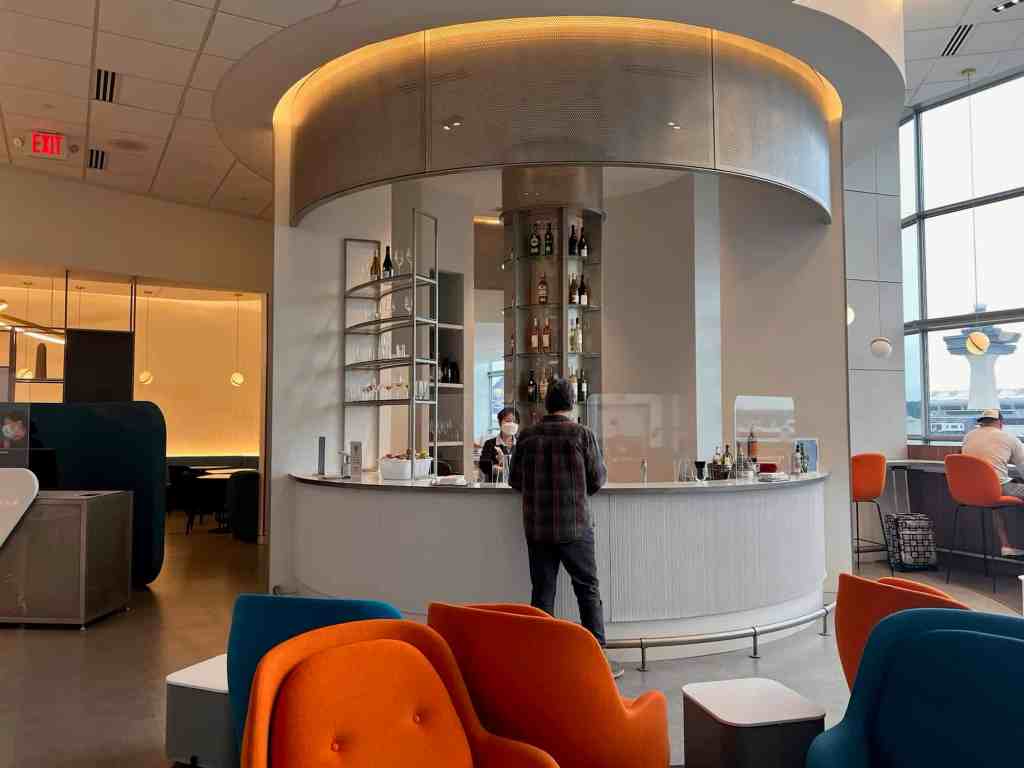 Location: Just past TSA, before you go downstairs to the AeroTrain. The Capital One Lounge is Dulles’ newest and most accessible option. It’s located right after security, so it doesn’t matter which terminal you’re flying from. It’s an especially smart stop if you’re departing from the C or D gates, which lack many food or comfort options.