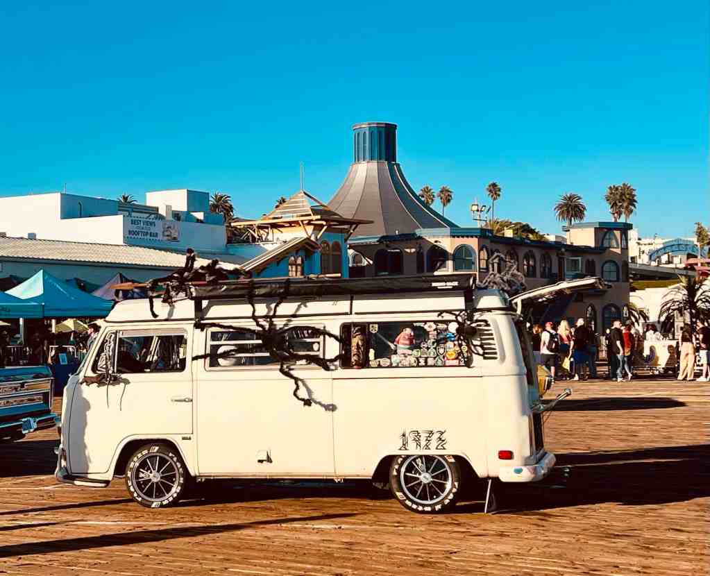Next, hop in a rideshare toward the coast and Venice Beach. If you haven’t been, it’s a must-see just for the scene. We walked the boardwalk past skaters, beach bodybuilders, street vendors, and people filming everything for social media.