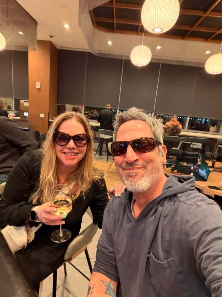 We started our journey in the brand‑new Admirals Club in PHL Terminal A West. This is not included with the premium economy fare, but we recently got AA’s new Globe card which comes with four passes a year. You can also purchase a day pass with money or points. If you have Amex access, the Centurion Lounge is close by. We wanted to check out the new Chase lounge, but we didn’t have time to walk over to Terminal D.