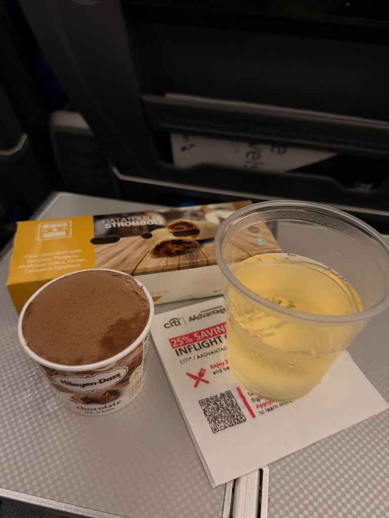 This was an unexpected surprise midway through the journey. The flight attendants came around with a sandwich, ice cream, and beverages. I didn’t need to eat again but ice cream is always a good idea and it made my dehydration headache disappear. It was a thoughtful touch and adds to the value of the experience.