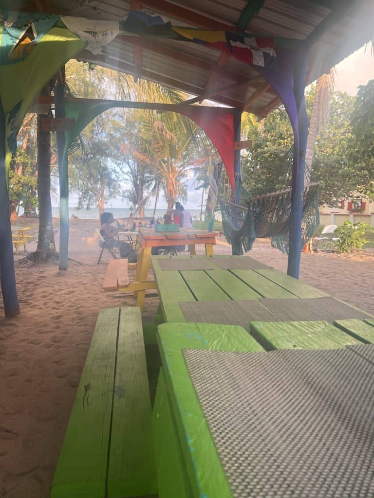 On our second visit, we stayed at White Sands Cove and absolutely loved it. The condos here are perfect for a longer stay. The property has a great pool and bar and serves an excellent breakfast, lunch, and dinner. There are a few good restaurants in walking distance, too. We loved Aji Tapa Lounge for dinner. You should note, however, that the cayes don’t have as nice of beaches as Placencia and Hopkins on the mainland. If we had to choose between them, we’d go with Placenica first, then Hopkins for a more budget-friendly laid-back vibe.