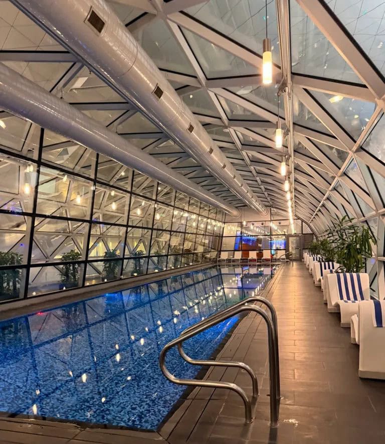 The pool is tranquil, temperature-controlled, and overlooks the terminal. It’s a surreal experience to swim laps while looking down at travelers in an airport. It added a needed layer of calm to an otherwise hectic travel experience.