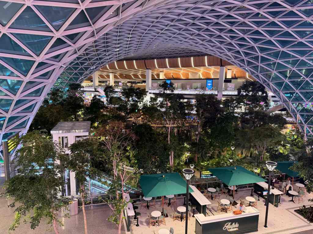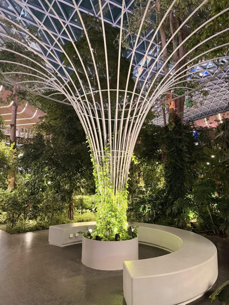 If you have a short layover, definitely take the tram. But we decided to get our steps in. We loved the ambiance here and spent a good 30 minutes just walking the elevated walkways and looking at the trees. It makes a great stop before or after the lounge.