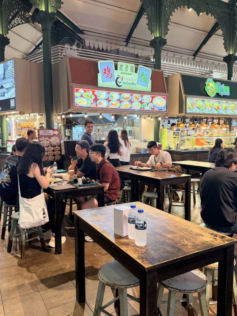 When you arrive, head straight for the stalls serving Hainanese chicken rice. It might sound like a simple dish, but the poached chicken and seasoned rice are a staple for a reason. Pair it with a large Tiger beer, find a seat among fellow travelers, and soak in the vibe.