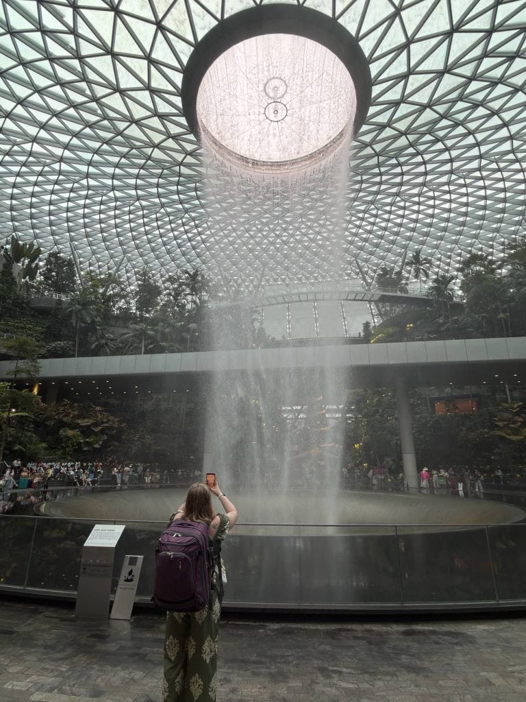 Even if you aren’t flying out immediately, Changi Airport is a destination on its own. We had a night flight and headed there early to explore the Jewel. This is a massive retail and entertainment complex connected to the terminals. But it’s located outside of security, so you’ll have to remember to leave plenty of time for security after your visit to the Jewel.