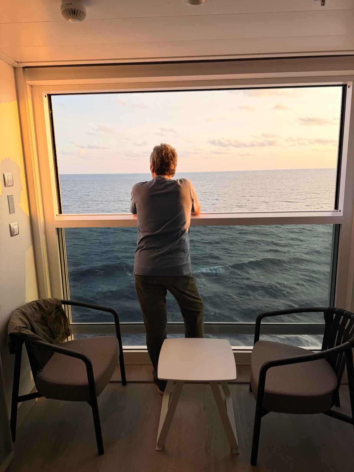 I know that’s not universal. Other members of our group said they still prefer a traditional balcony, and I understand why. But for us, the Infinite Veranda made the room feel bigger and more usable. Instead of a separate little outdoor area we might only use occasionally, it felt like the cabin itself stretched toward the sea.
