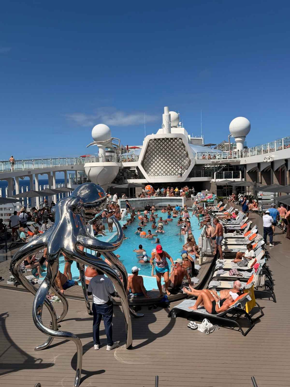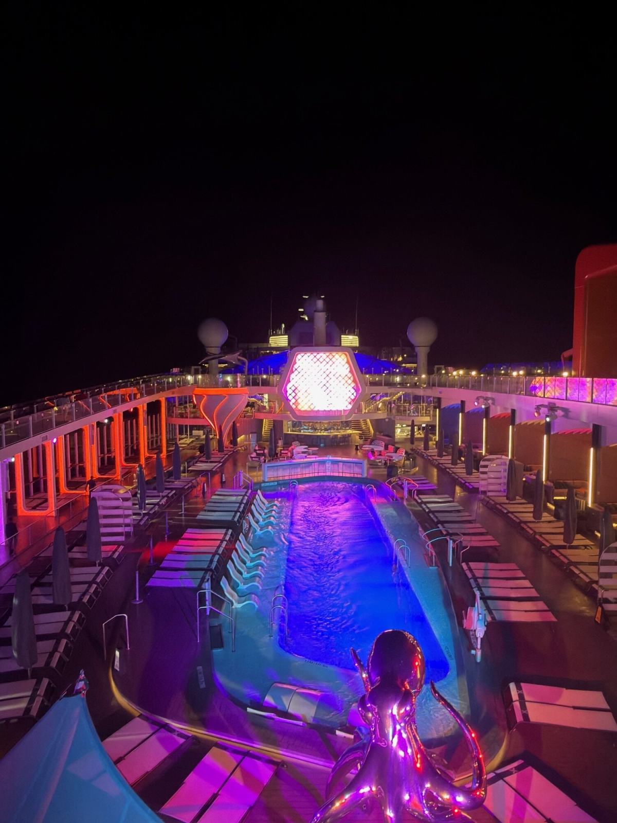 The pool deck worked well for us overall. One thing I really enjoyed was the walking path around the pool. It made the area feel more usable and a little less static than some ship pool decks can feel. There were plenty of loungers, even when the space got busier, and we never felt stressed about finding a place to sit.