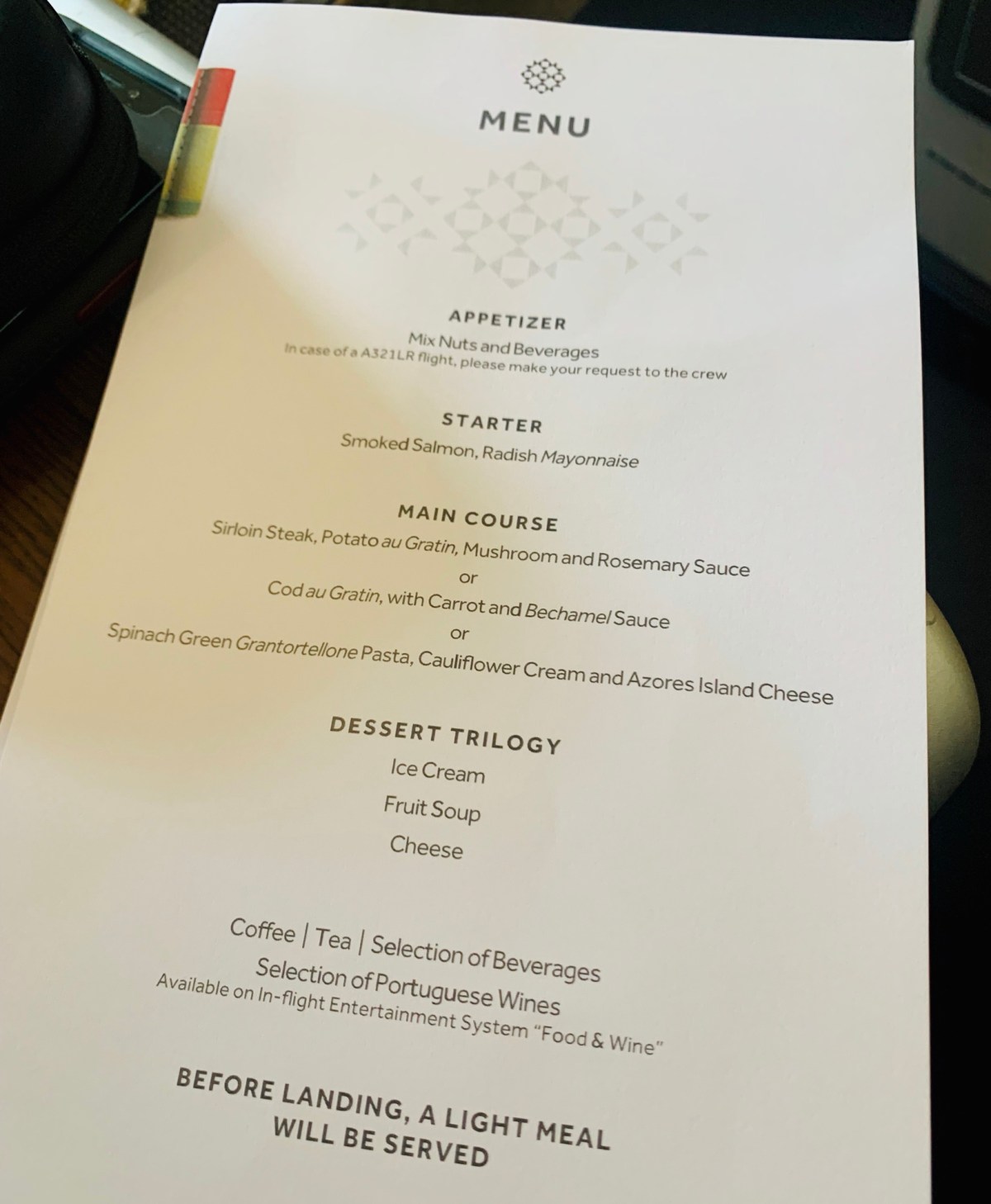 Portugal is known for and proud of their wine. TAP’s selection really embraced this part of Portuguese culture. Our flight attendant was from Lisbon and knew the list well, so he gave us some great recommendations and we even had a little tasting experience at 30,000 feet.