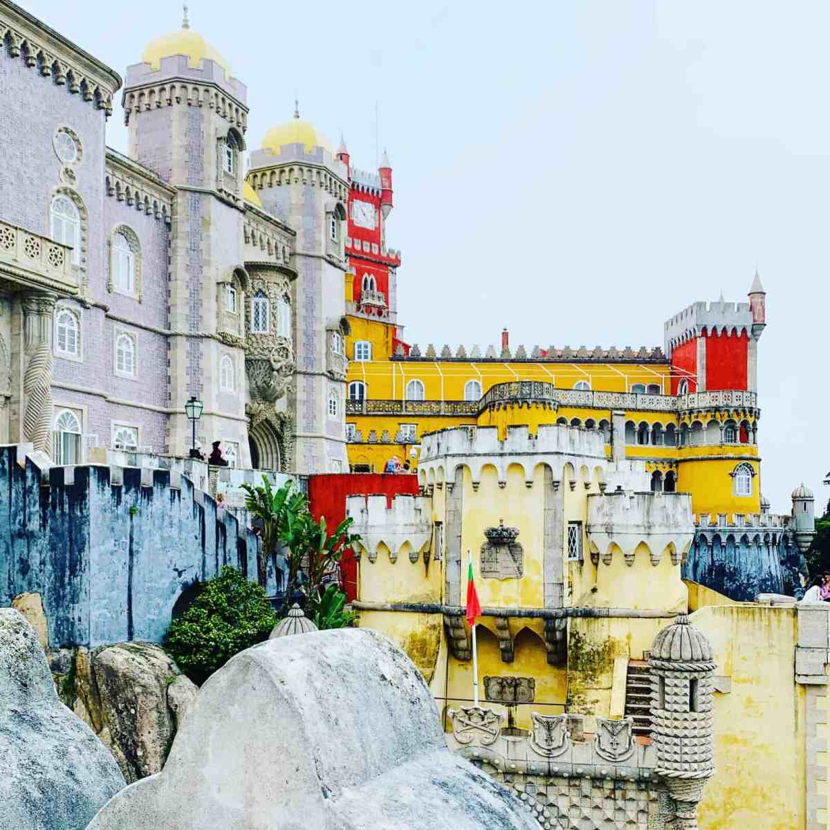 The main draw is Pena Palace, a 19th-century royal palace that sits high on a hill with stunning views on a clear day. The surrounding UNESCO-listed park has several other palaces, Moorish castle ruins, and walking trails that can easily fill a full day. Once you’re there, Ubering up the mountain is easy if you don’t want to wait for the bus – the ride is about €3 and saves a lot of time. Plan on at least three hours to explore the grounds.