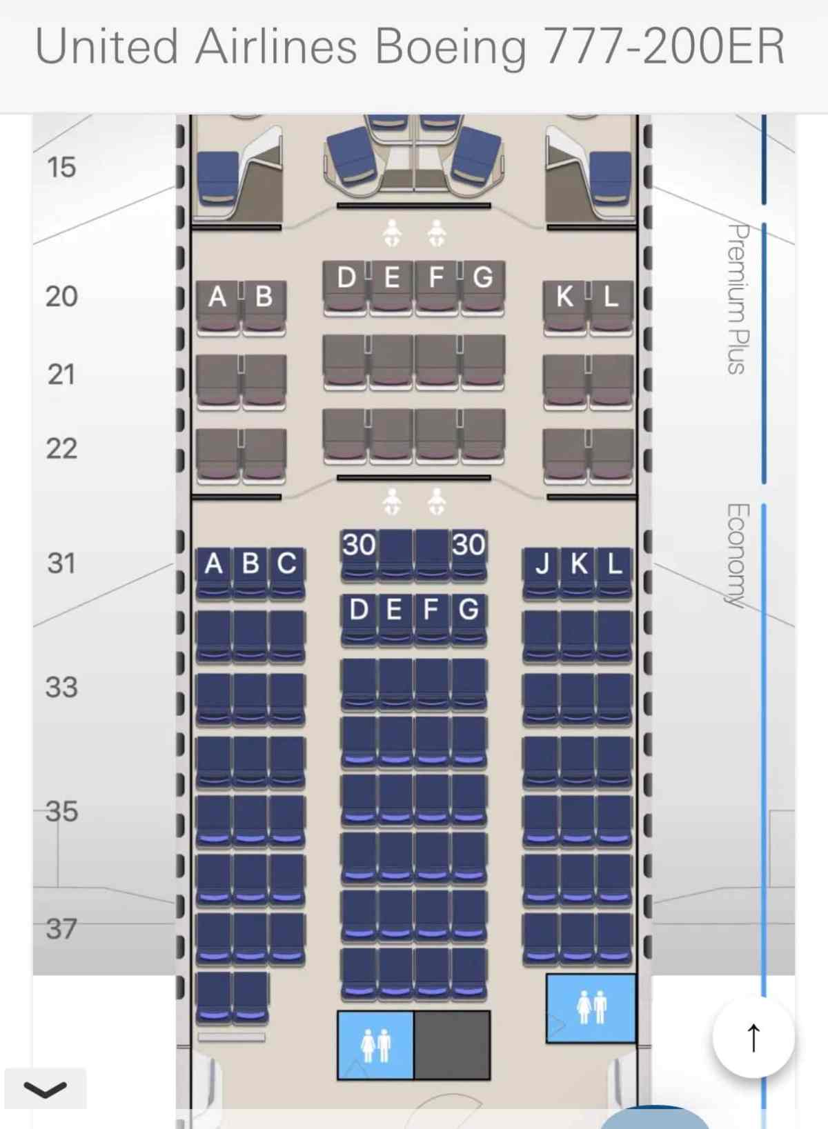 On the 777-200ER, however, there are a few lavatories just about 8 rows behind Premium Plus in the middle of economy, which keeps the premium economy cabin quieter and the walk shorter than on the 767, where the lavatories are all the way in the back of the aircraft.